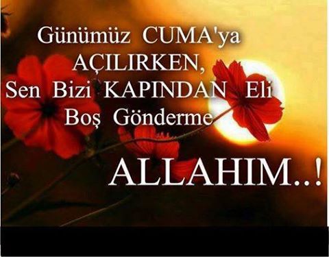 Ya Rabbi! Sesimizi duyansın, hallerimiz bilensin. Açtık gönlümüzü sana, Sen Sen imdat eyle, Sen affeyle, sen yollarımızı hayır eyle. Melekler daima duacınız olsun. Yüreğiniz ferah, imanınız bol olsun. Sevgili Peygamberimiz Şefaatçimiz olsun. Cumanız Mübarek olsun!