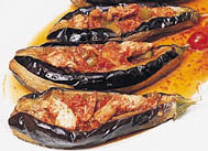 Patlıcanların sap kısmını koparmadan çizgili şekilde soyun. Tuzlu suda bekletip, süzdükten sonra kızgın yağda ters yüz ederek kızartın.