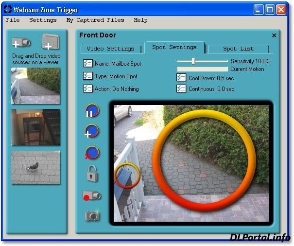 What makes this software hot? Hot Spots. They are objects that you can place anywhere on the image, move around and resize. They detect motion within this area, and when triggered, they perform the actions that you have selected.