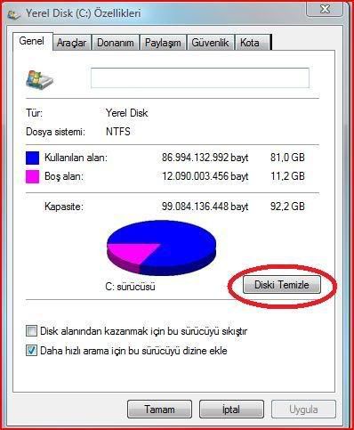 Temizleyi (Disk Cleanup' ı) seçelim.