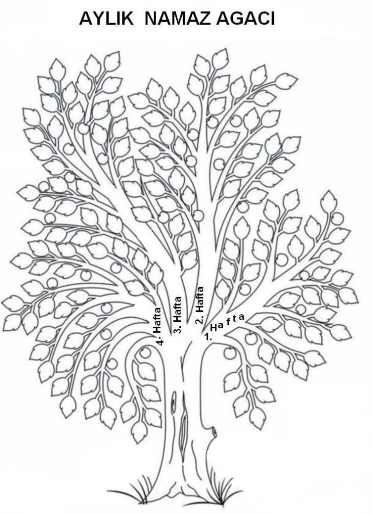 ayı temsil eden büyük dal ve haftayı temsil eden küçük dal ile baslanır. Vaktinde kılınan her namazın ardından bir yaprak yeşil renkle boyanır. Şayet namaz kaza olarak kılındıysa yaprak sarı renkle boyanır. Sadakayı temsil eden meyvaya gelince