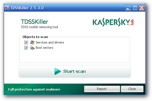 Kaspersky TDSSKiller - algılamak ve rootkit, gizlice sisteme girmiş ve sistem fonksiyonları kanca kötü niyetli programları kaldırın programı.