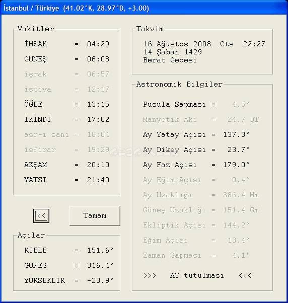 Kıble açısı, pusula sapması ve güneş yatay/dikey açısı