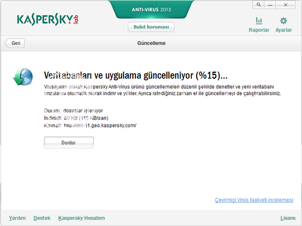Tam koruma için Kaspersky Anti-Virus 2013'i seçeceğiniz bir güvenlik duvarı yazılımı ile birlikte kullanmalısınız.