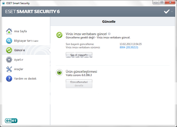 01 - ESET programinizin simgesini yeşil yapan, isletim sisteminizin güncel olup olmadigini denetleyen,