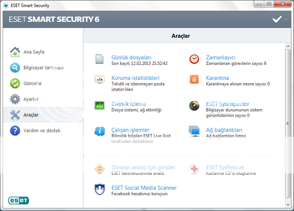 ESET menüsündeyken, klavyenizden "F5" tusuna basip, soldan "Araclar" yanindaki isarete basin