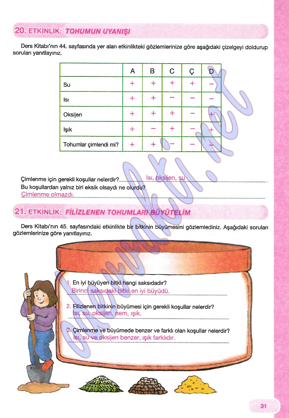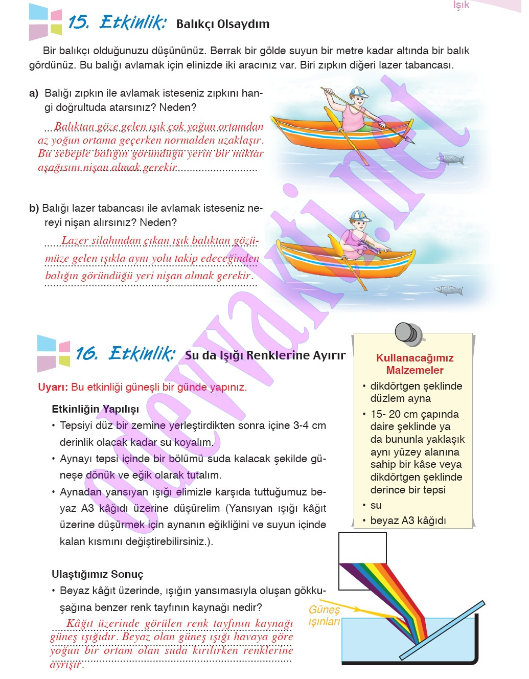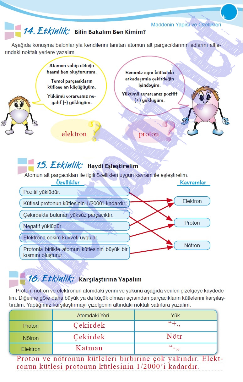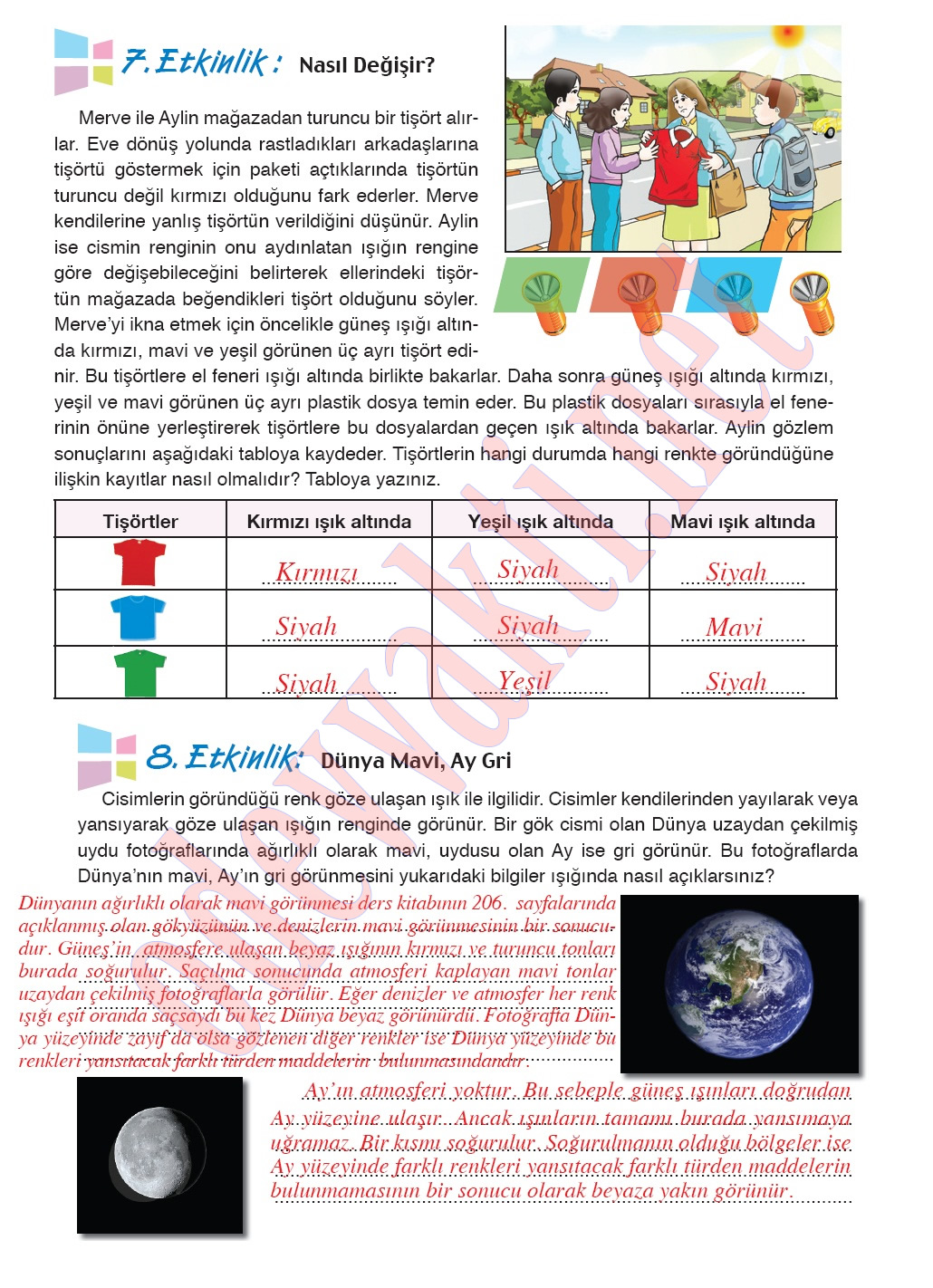 7. Sınıf Fen ve Teknoloji Çalışma Kitabı Cevapları(MEB YAYINLARI);