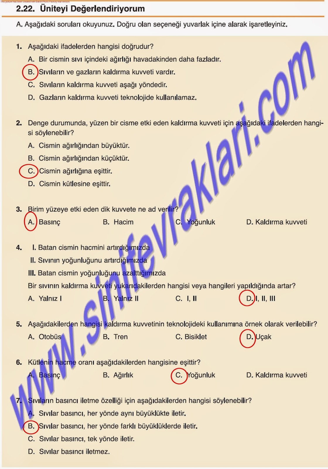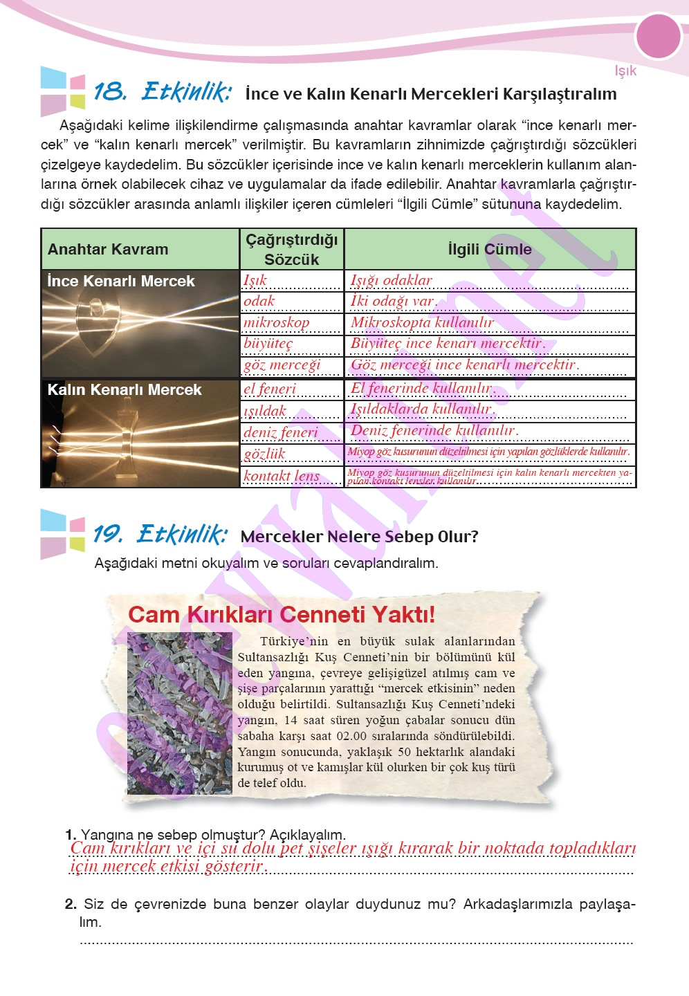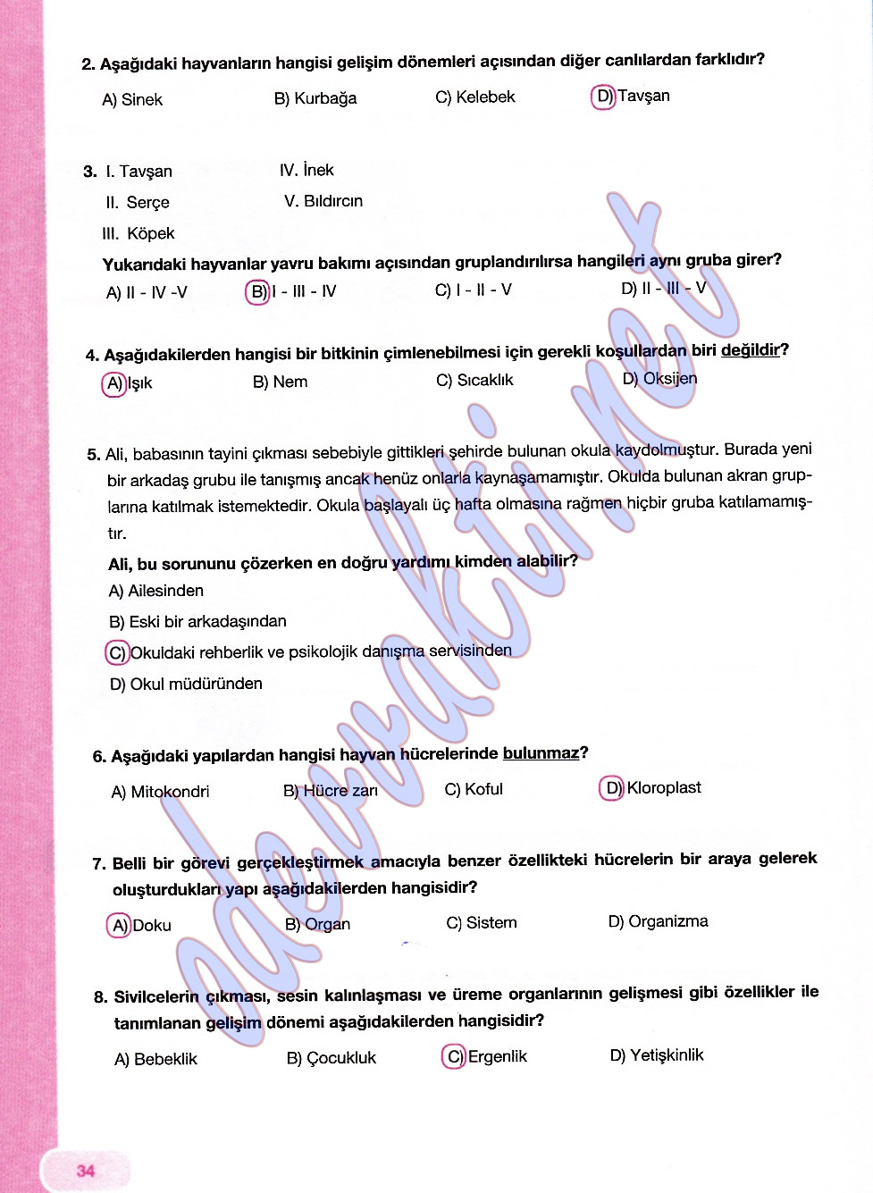 7. Sınıf Fen ve Teknoloji Çalışma Kitabı Cevapları(MEB YAYINLARI);
