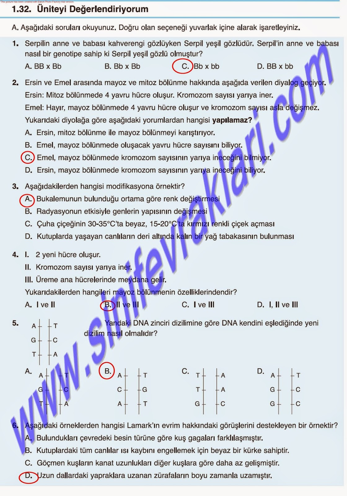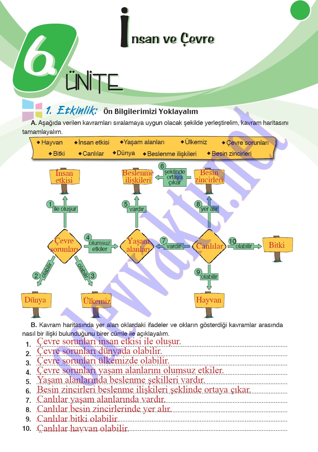 6. Sınıf Fen ve Teknoloji Çalışma Kitabı Cevapları(MEB YAYINLARI);