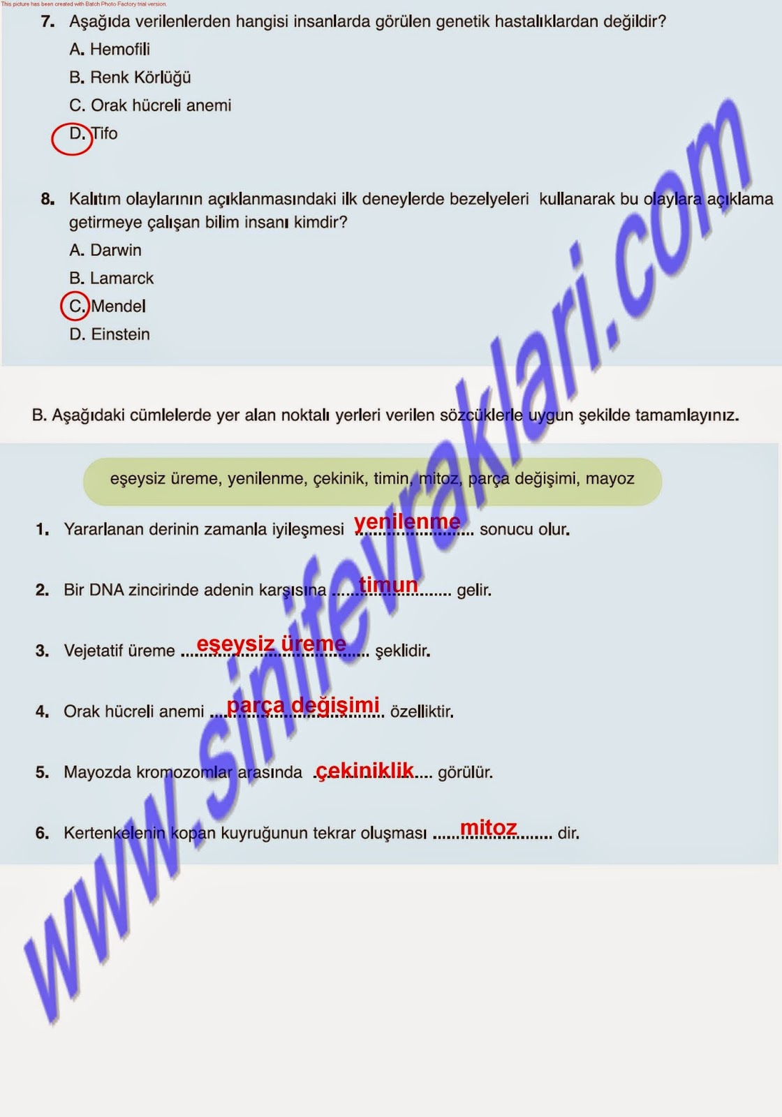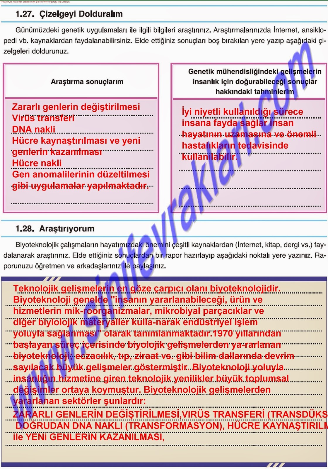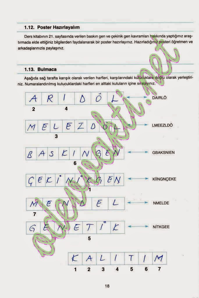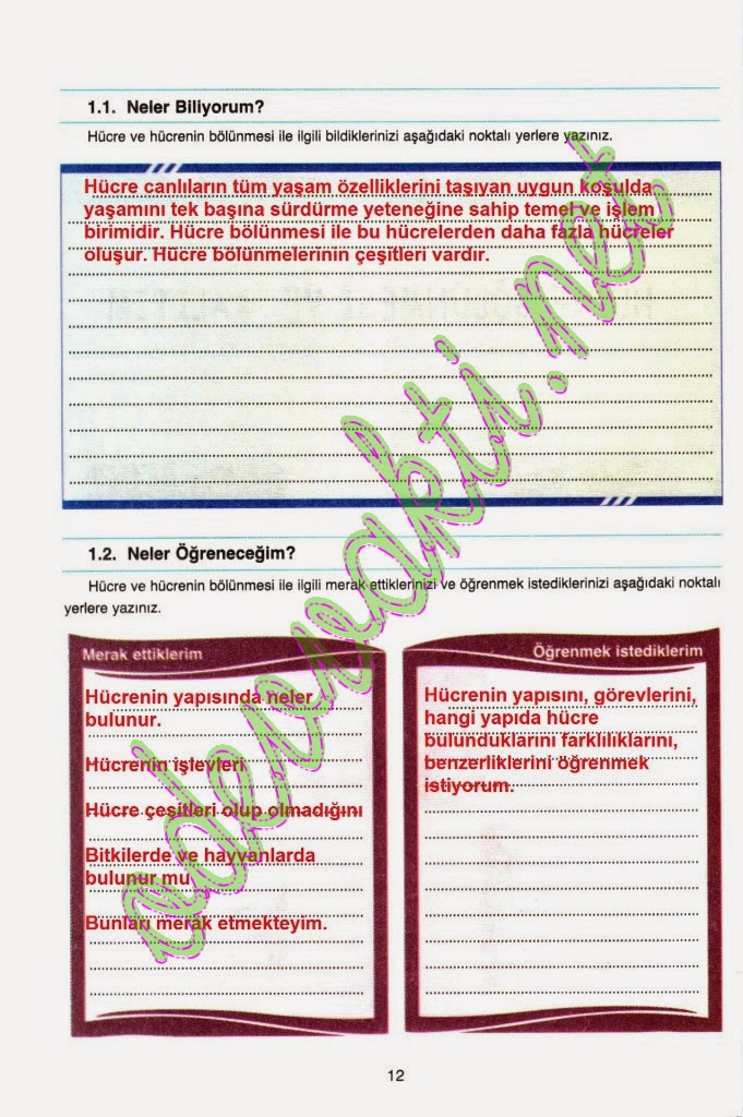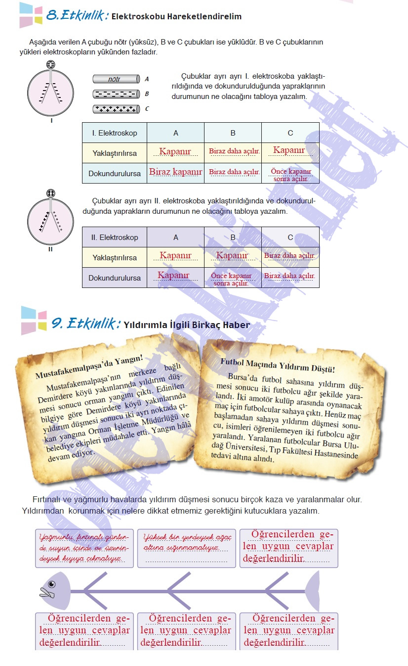 6. 7. ve 8. Sınıf Fen ve Teknoloji Çalışma Kitabı Cevapları(2014-2015) Pdf İndir