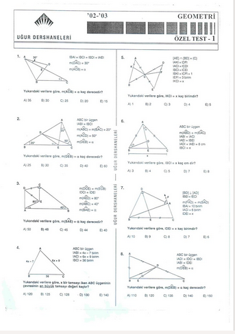 Uğur Dershaneleri Yayınları Geometri Özel Yaprak Testleri Pdf İndir