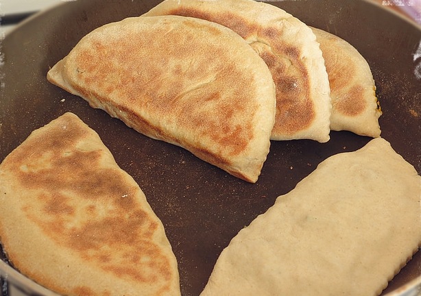 - Yarısına hazırladığınız iç malzemesinden 2 kaşık koyun ve kapatın