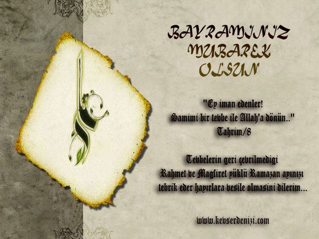 Dua kapılarının ağzına kadar açık, bela ve kötülüklerin arındırıldığı bu güzel günde Bayramınızı tüm sevdiklerinizle birlikte hayırlı ve mutlu geçirmeniz dileğiyle Mübarek Ramazan Bayramınızı kutlarım.![]()