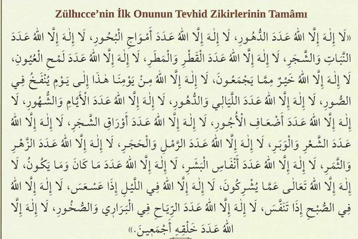 Standart zilhicce ayı günlük zikirleri