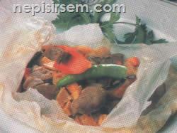 Yağlı kağıda sarın.Önceden ısıtılmış 200 dereceli fırında 5 dak daha tutun.Fırından alınca,üzerindeki kağıdı hafifçe yırtın. Dilerseniz ince kıyılmış maydanozla süsleyip,servis yapın.