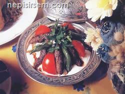 Bir başka tavada domates ve biberleri hafif pişirerek yoğurtlu kebabın üzerine koyup süsleyerek servis yapın.